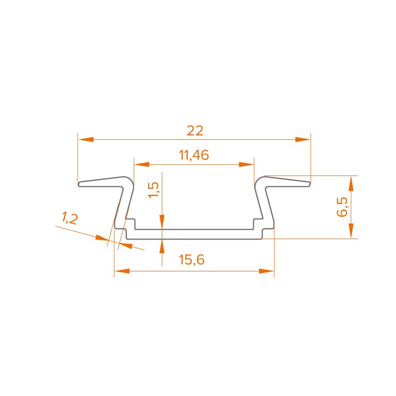 Алюминиевый анодированный профиль для светодиодных лент серии WLS. Ширина площадки для ленты 11,2 мм.